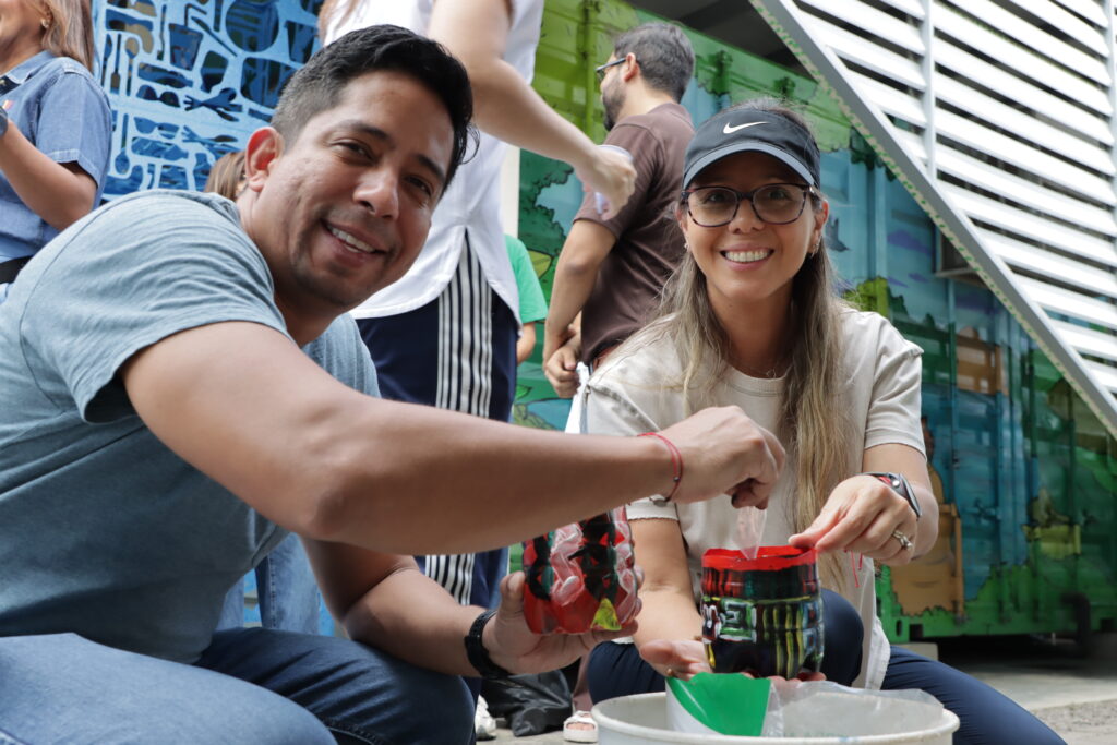 Durante la actividad, nuestros voluntarios conocieron de cerca cómo funcionan iniciativas como BoB y Wanda, comprendiendo el impacto real de la correcta gestión de residuos. Luego, pasamos a la acción: limpiamos materiales reciclables y les dimos una nueva vida, transformando ese mismo plástico en piezas de arte inspiradas en molas.